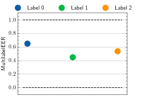 >>> # Example plotting a single >>> import torch >>> from torchmetrics.classification import MultilabelEER >>> metric = MultilabelEER(num_labels=3) >>> metric.update(torch.rand(20,3), torch.randint(2, (20,3))) >>> fig_, ax_ = metric.plot()