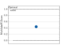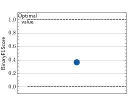 \[F_{1} = 2\frac{\text{precision} * \text{recall}}{(\text{precision}) + \text{recall}}\]The metric is only proper defined when \(\text{TP} + \text{FP} \neq 0 \wedge \text{TP} + \text{FN} \neq 0\) where \(\text{TP}\), \(\text{FP}\) and \(\text{FN}\) represent the number of true positives, false positives and false negatives respectively. If this case is encountered a score of zero_division (0 or 1, default is 0) is returned.
