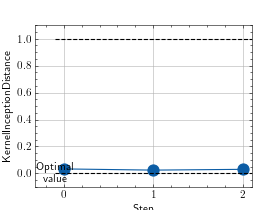 \[KID = MMD(f_{real}, f_{fake})^2\]where \(MMD\) is the maximum mean discrepancy and \(I_{real}, I_{fake}\) are extracted features from real and fake images, see kid ref1 for more details. In particular, calculating the MMD requires the evaluation of a polynomial kernel function \(k\)